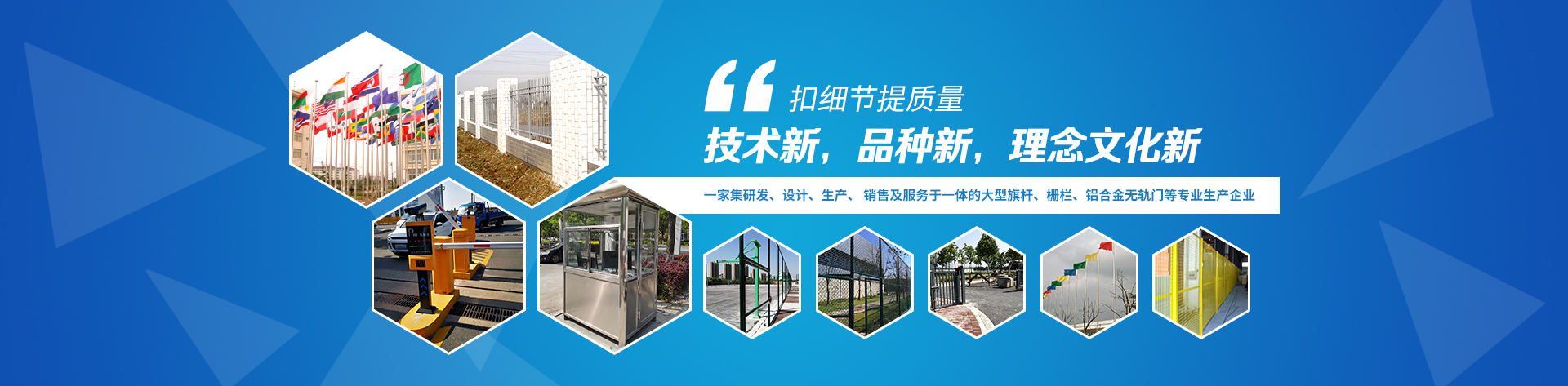 苏州誉天盟安全设施有限公司是一家集研发、设计、生产、 销售及服务于一体的大型旗杆,栅栏,铝合金无轨门,铝合金灯杆及配套设施专业生产企业。销售网络遍布全国及世界各地。为打造高品质的产品与服务,我们拥有专业的技术人才,并从德国、法国、意大利引进先进的 高科技生产设备。